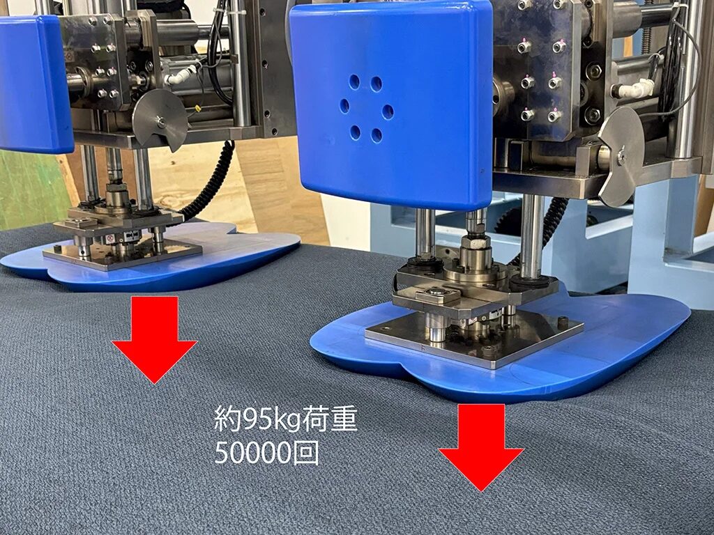 一般的な家庭での約8年間の使用を想定し、95kgもの荷重を5万回も繰り返し加える試験を実施。