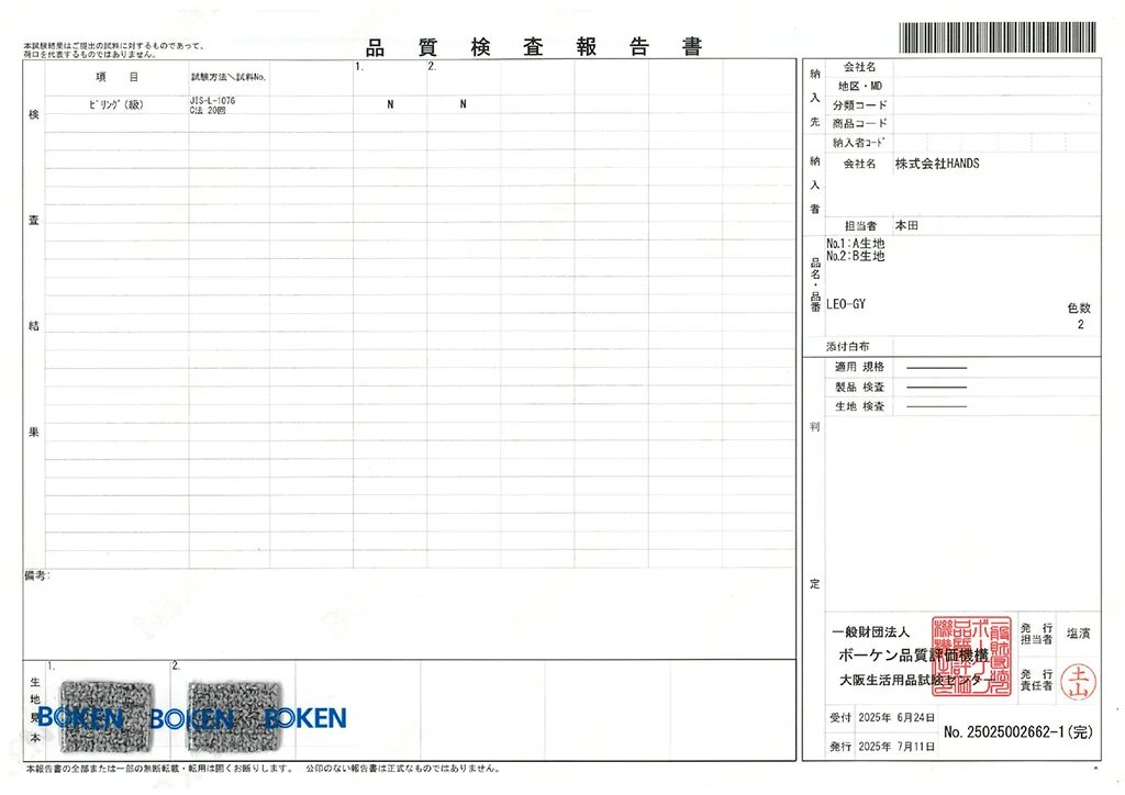 第三者機関において、JIS規格の中でも特に厳しい「ピリング試験C法」を採用しています。